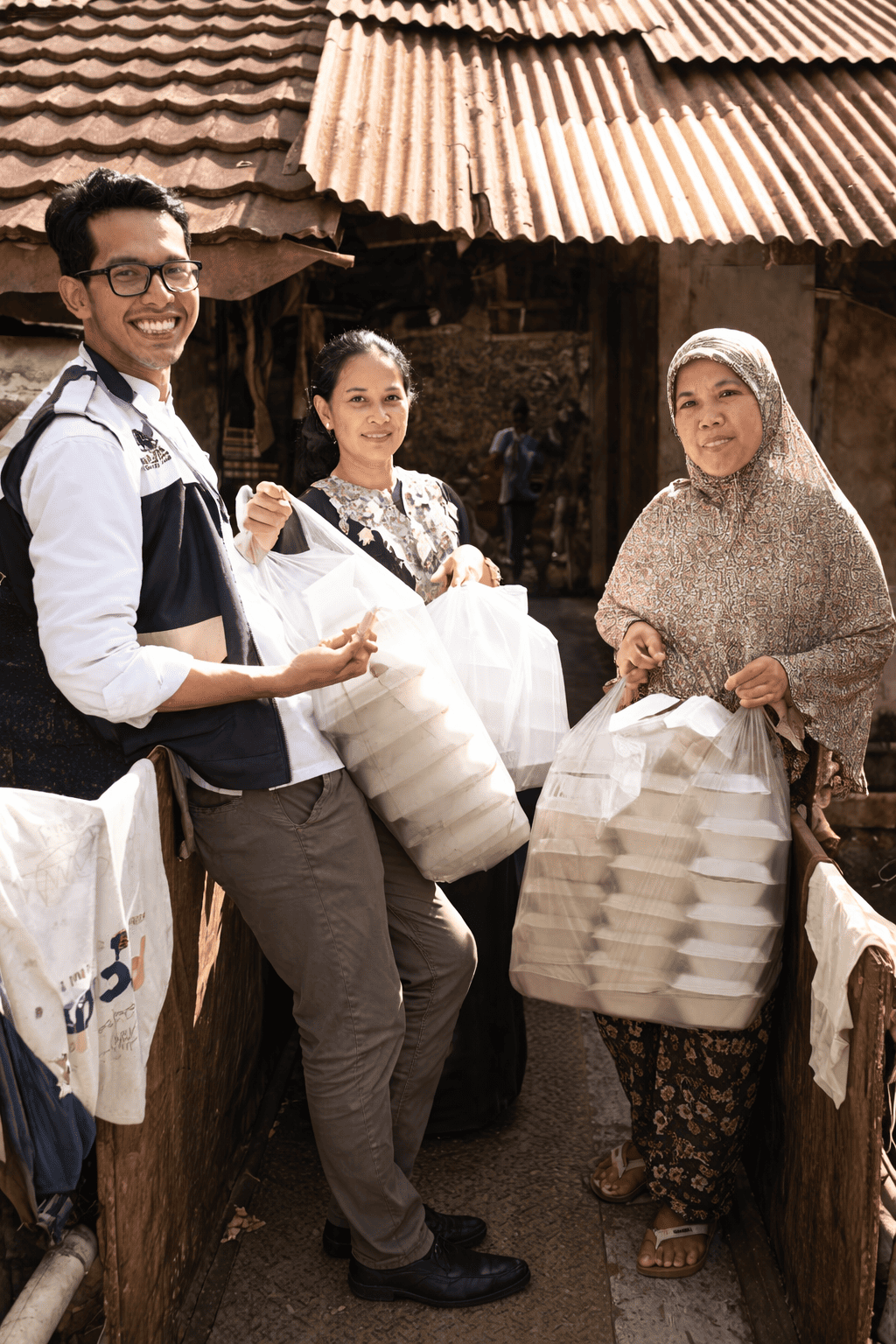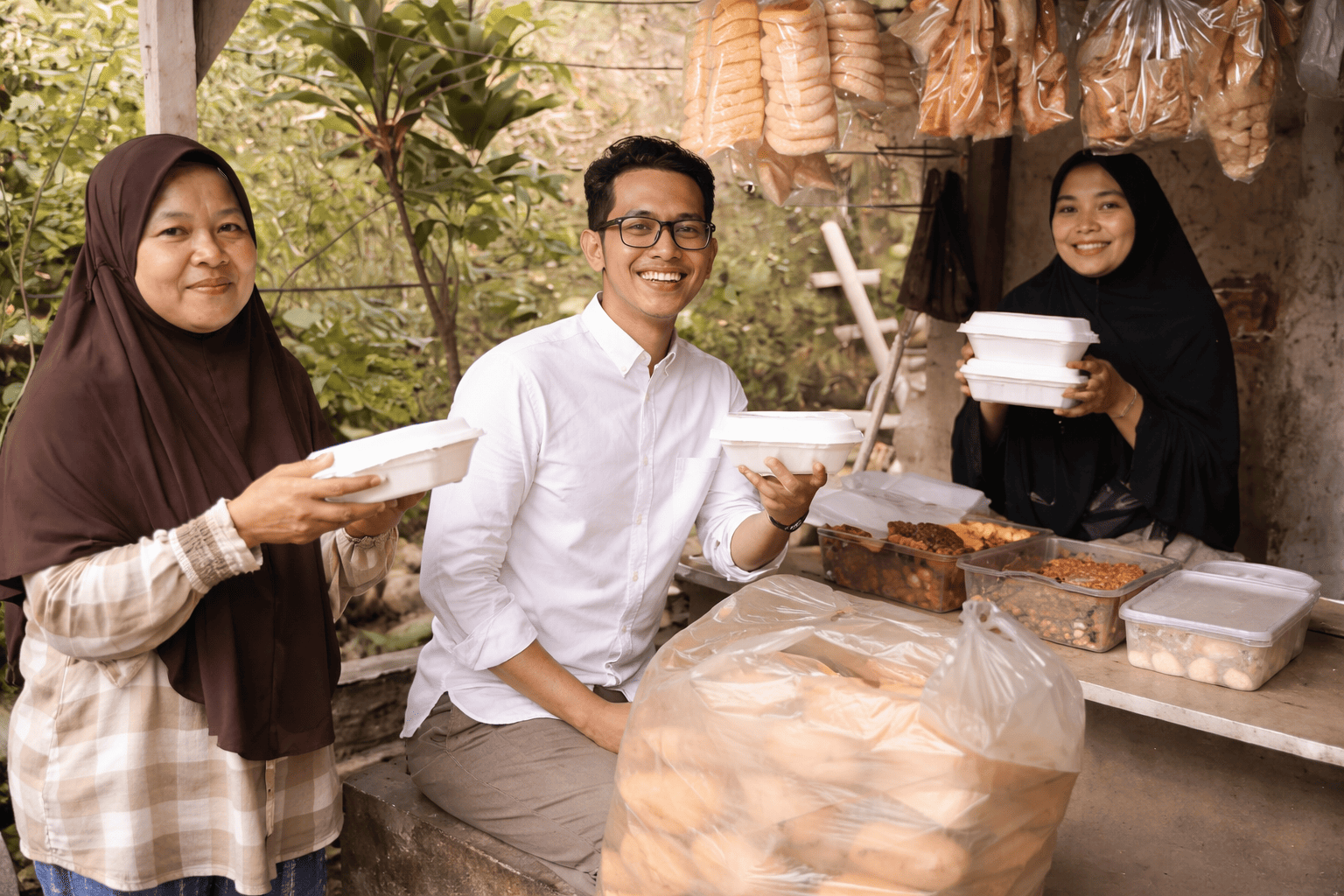 Dan kami pesan makanan dari rumah makan sederhana ( UMKM ) dekat lokasi penyaluran,